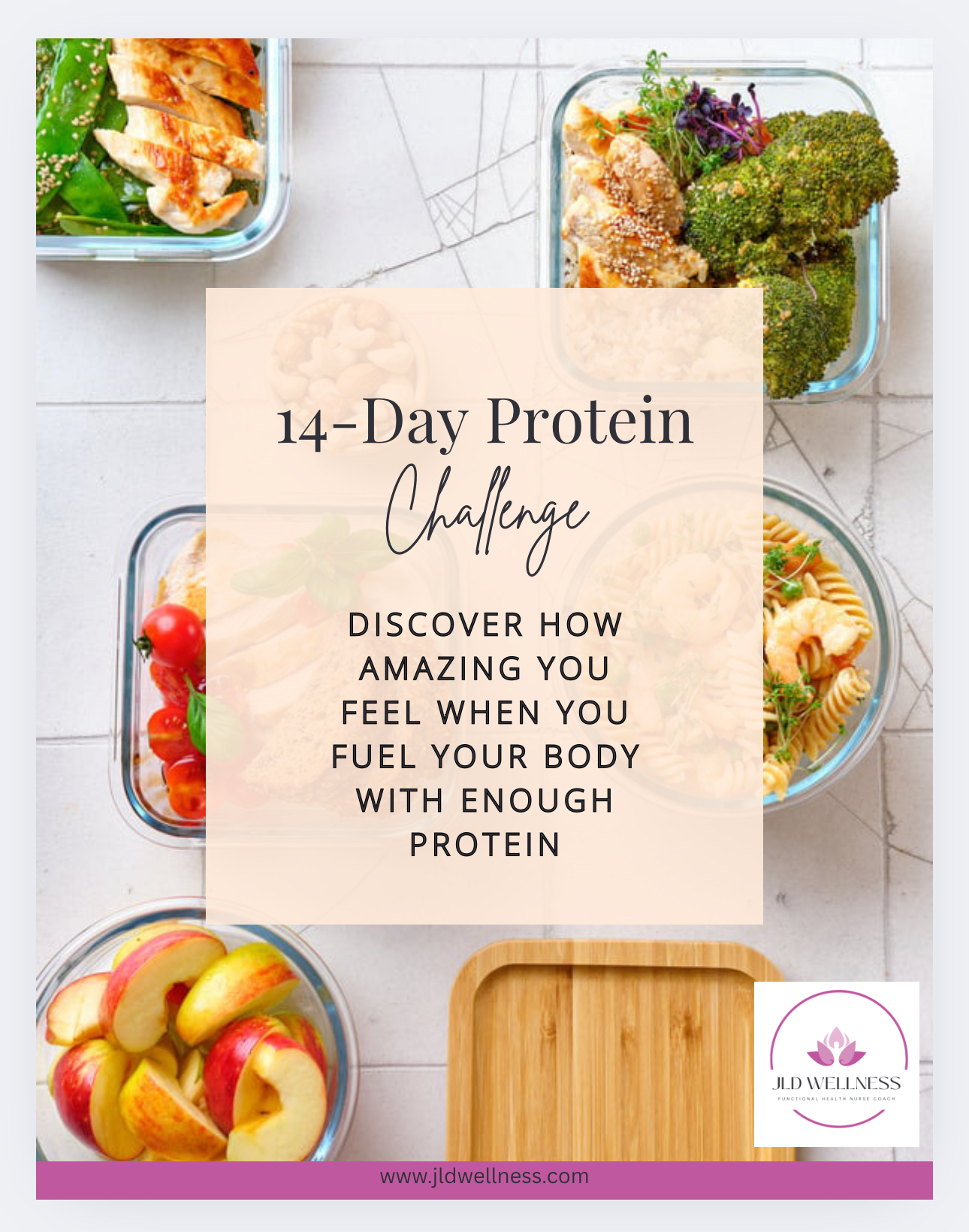 Get this 14-Day Protein Challenge Guide FREE! Done for you Breakfast, Lunch, and Dinner meal suggestions and recipes, along with helpful hints on how to gradually incorporate more protein into your diet so you don't throw off your digestion.